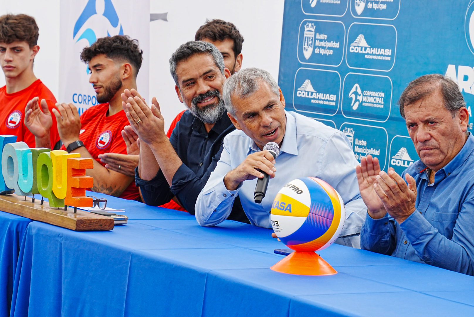 “Agradecemos a los primos Grimalt por estar aquí. Nosotros hemos apostado por los deportes de playa como una herramienta para que ocupen de buena forma, niños y niñas, su tiempo libre. Y lo hemos hecho de forma permanente, aquí se habla del Arena Cavancha (…) porque generalmente en los deportes de arena la estructura se arma y se desarma por el evento. Lo que tenemos acá es un estadio permanente, uno de los pocos en Sudamérica. Aquí entrenan durante toda la semana, tenemos muchas disciplinas en Cavancha y ya nos vamos a extender a Playa Brava. Estamos felices, esperamos que les vaya bien a nuestro equipo de Chile femenino y masculino”, dijo el alcalde Mauricio Soria Macchiavello, presidente del directorio de la Corporación Municipal de Deportes.