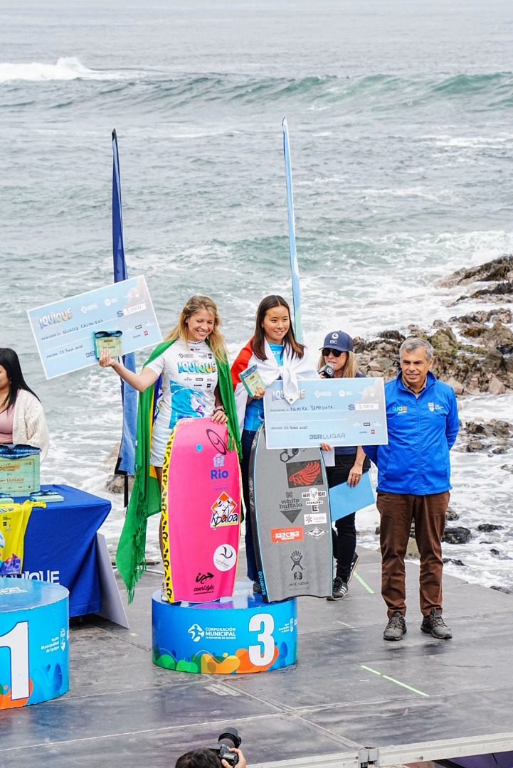 “Tuve que pasar por muchas cosas para obtener este resultado. Me siento muy feliz de haberlo logrado acá en Iquique porque conozco mucho estas olas y me siento cómoda. Solo me queda agradecer a la organización y al alcalde que siempre nos apoya realizando estas competencias y estoy muy contenta por todo el evento”, manifestó la campeona tras subir al podio y obtener un cheque de 6 mil dólares por su primer lugar.