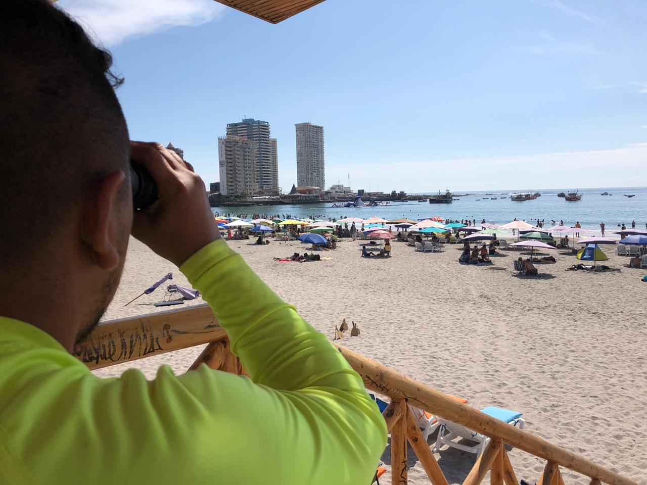 “Empezamos desde las 9:00 AM y desde mediodía ya se pueden ver una gran cantidad de personas”, indica Fredy Álvarez, supervisor del cuerpo de salvavidas. Agrega que, durante el día, los bañistas cometen varias imprudencias. “El consumo de alcohol y drogas hace que a veces no acaten nuestras órdenes. Cuando hay bandera roja, por ejemplo, no se puede pasar más allá de la rompiente, pero las personas bajo los efectos mencionados no hacen caso. En esa situación, tenemos que ingresar al mar, sacarlos y llamar a personal marítimo para que cursen la respectiva infracción”: