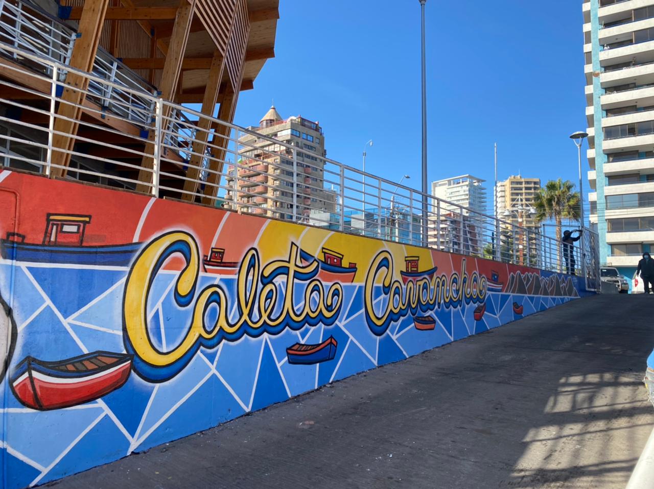 Gracias a una solicitud enviada al alcalde de Iquique, Mauricio Soria Macchiavello, por parte del Sindicato de Pescadores de la Caleta Cavancha, es que la Unidad de Muralistas de la Dirección de Aseo y Ornato está realizando un pintado con temática marina, de 36 metros cuadrados, en el sector de acceso a la pescadería, a fin de que el lugar sea atractivo para clientes y que, una vez que la situación sanitaria lo permita, se habilite como punto turístico.