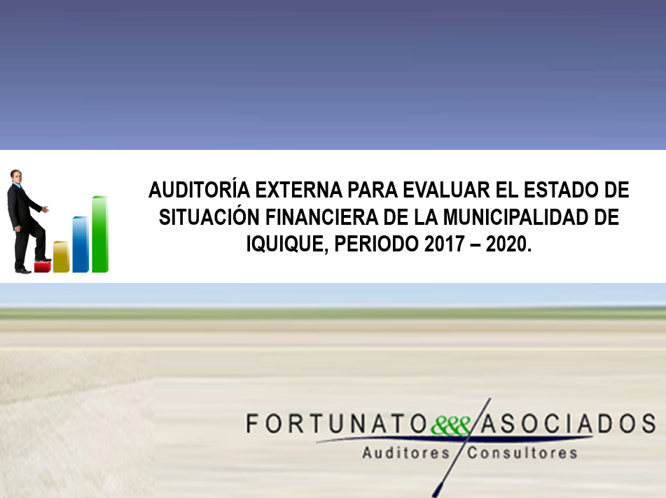 Aquí revise los documentos vinculados a la AUDITORÍA EXTERNA realizada por la empresa FORTUNATO Y ASOCIADOS LIMITADA, para evaluar el estado de situación financiera de la Municipalidad de Iquique correspondiente al periodo 2017 – 2020