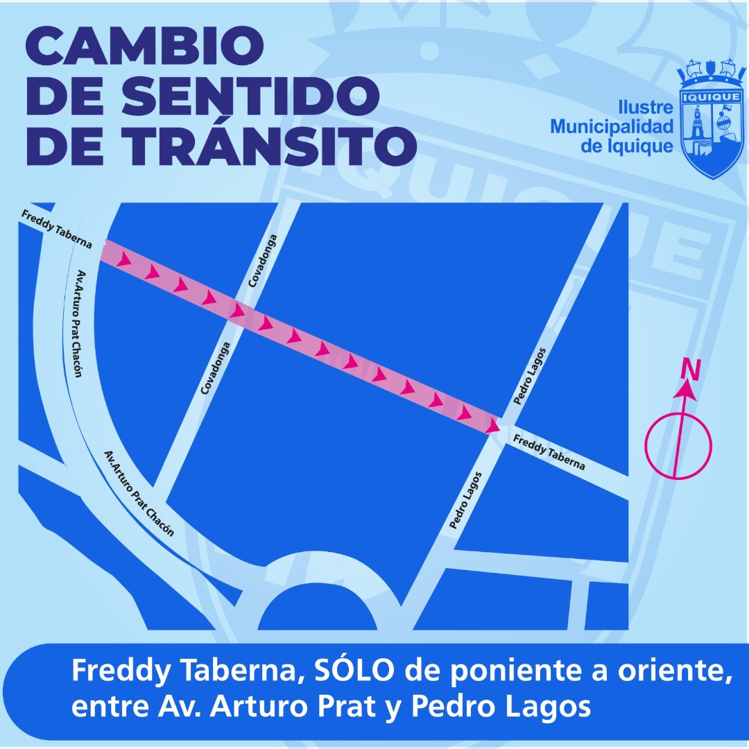 Como una forma de procurar mayor seguridad para las y los residentes de este sector de la capital regional, además de peatones, ciclistas y conductores que transitan por allí, es que la Municipalidad de Iquique informa del cambio de sentido de calle Freddy Taberna.
