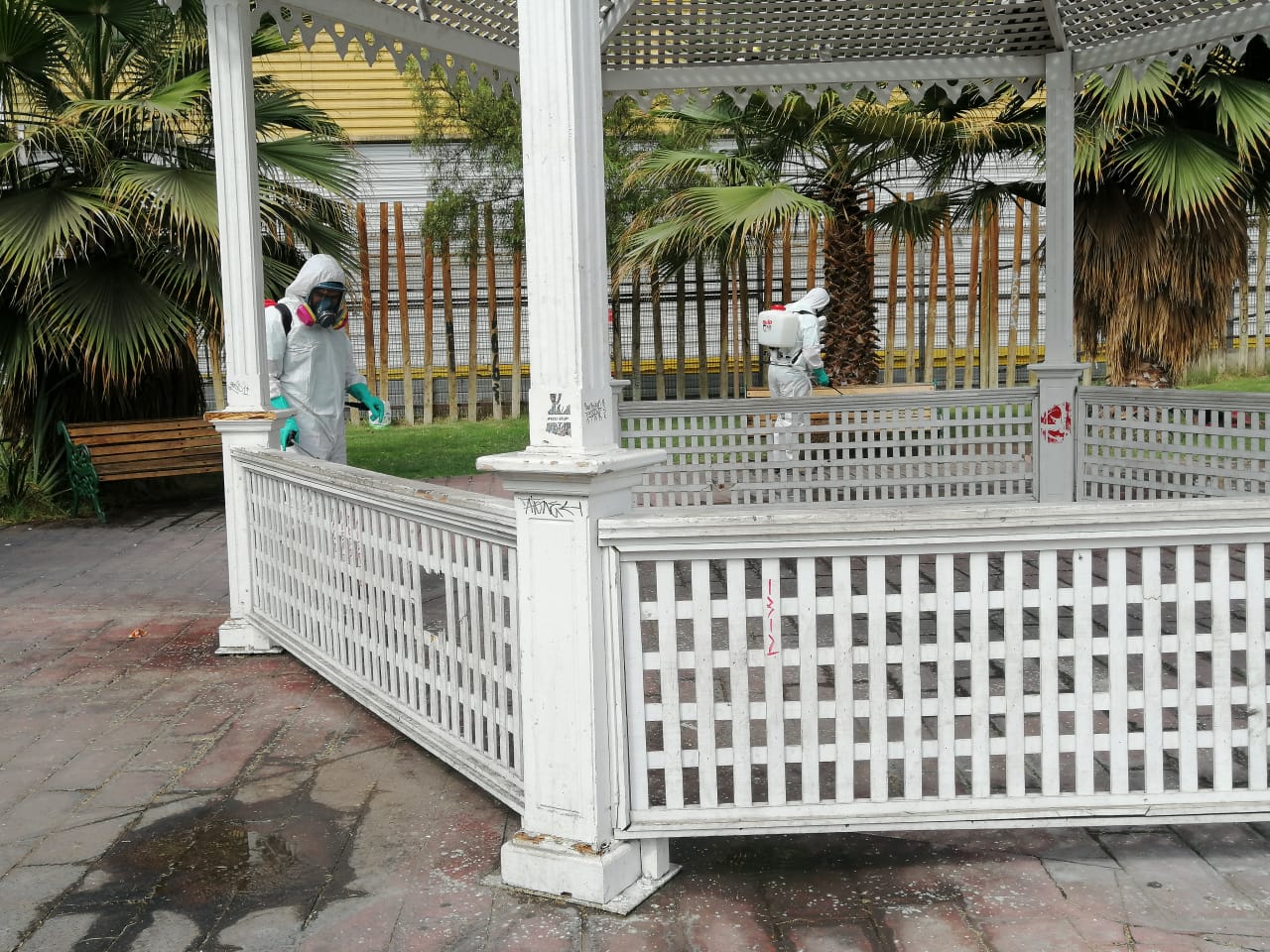 Para evitar posibles fuentes de contagio de Covid-19 y entregar seguridad a las iquiqueñas, iquiqueños y usuarios de los espacios públicos de la ciudad, es que la Dirección de Medioambiente de la Municipalidad de Iquique, comenzó un proceso de sanitización con amonio cuaternario, sustancia química que mata virus y bacterias, no es tóxico ni daña plantas ni animales.