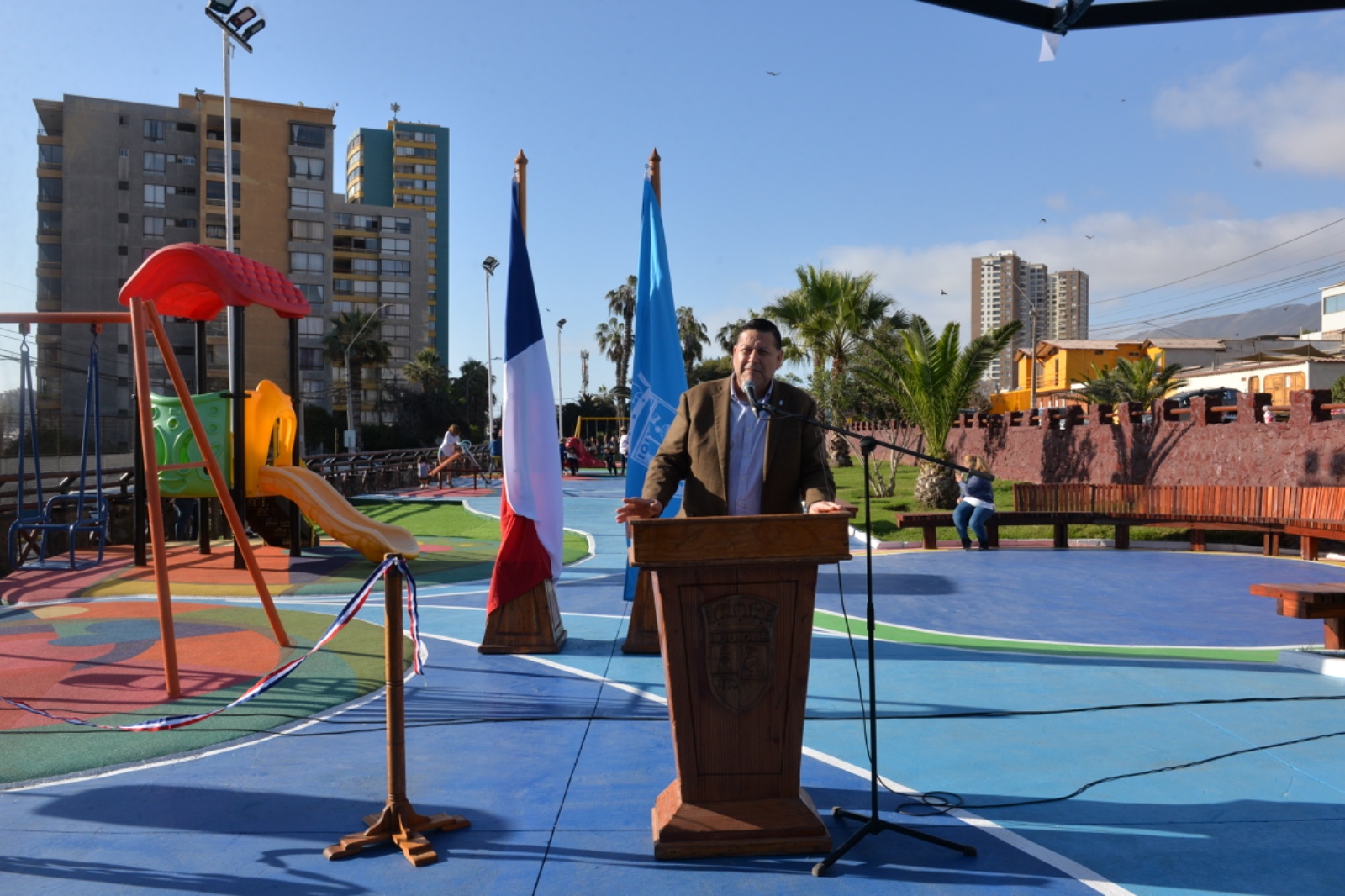 Cumpliendo con los anhelos de las familias del sector “Campanario” de ver renovado este espacio recreativo, la Municipalidad de Iquique concretó la entrega de las obras de mejoramiento de la Plaza “Elena Caffarena Morice”.