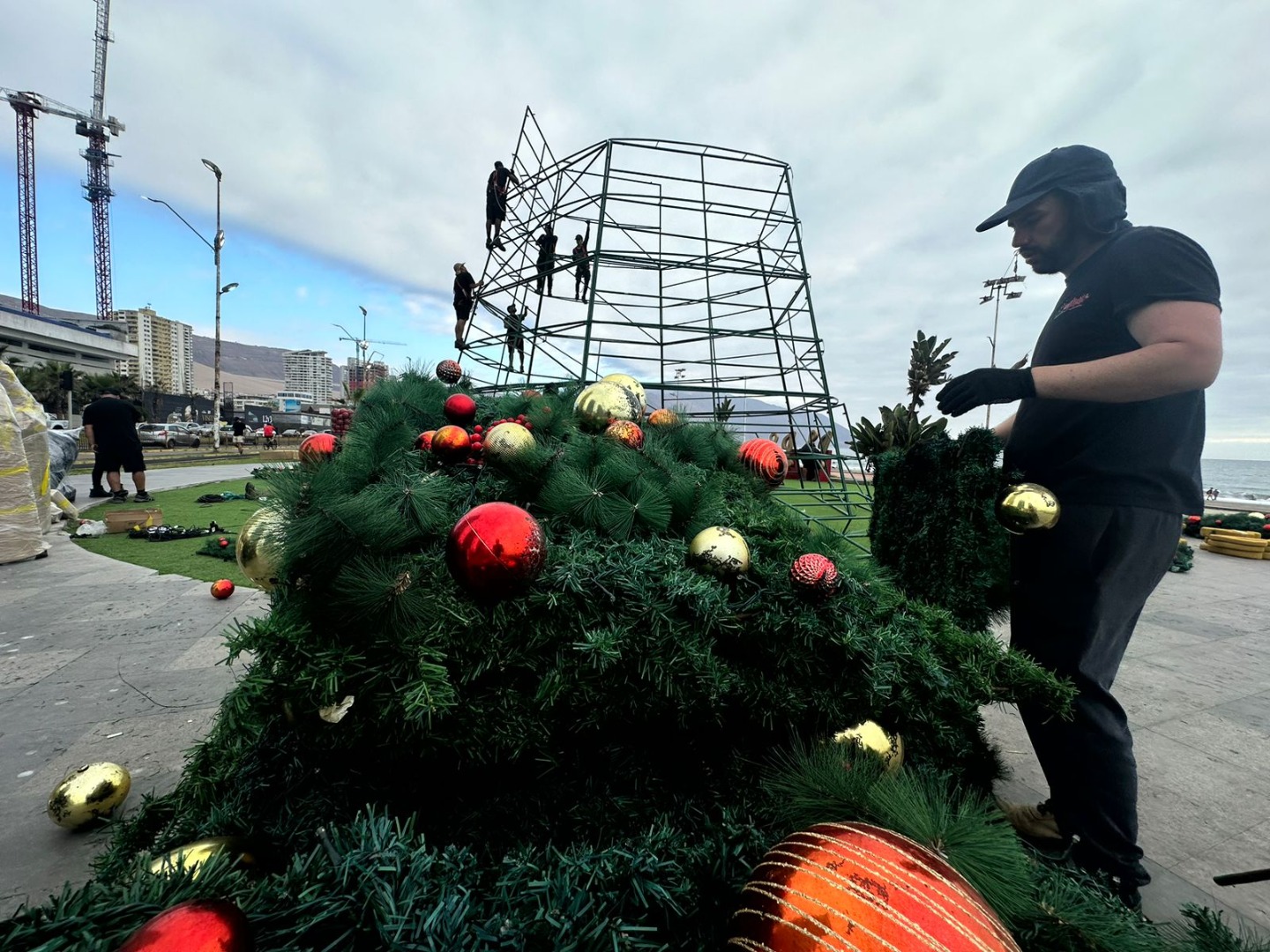 02/12/2024 Iquique comienza a vivir la Navidad 2024 con instalación de árboles gigantes de IMI