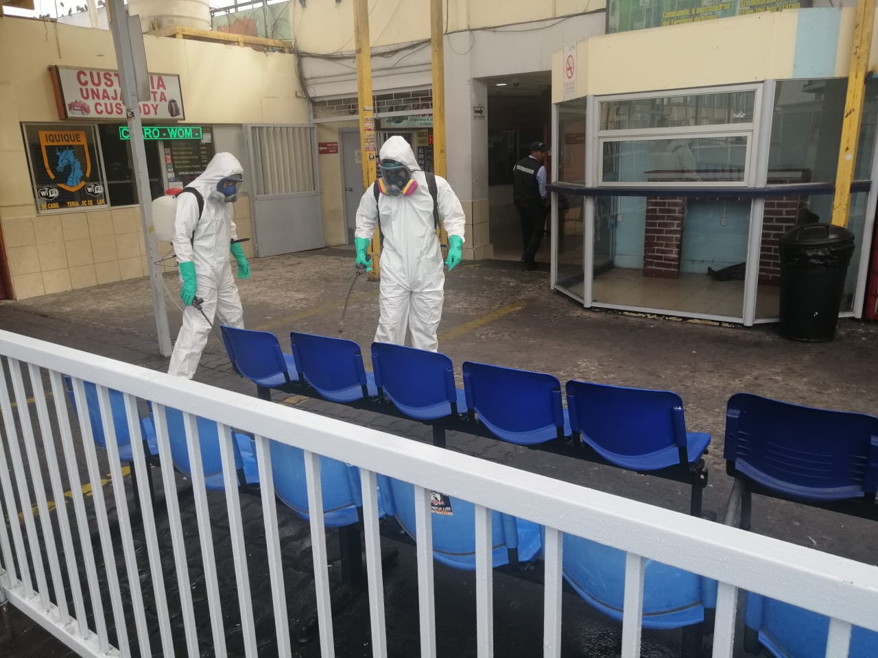 Es así como el Terminal Rodoviario fue uno de los primeros puntos de la ciudad en recibir la desinfección con amonio cuaternario que realiza la Municipalidad de Iquique, ya que es un espacio público con alta concurrencia de personas. Además, dentro de las medidas que se han implementado, destaca la toma de temperatura a cada persona que entra al recinto y a cada pasajero que sube y baja de los buses, incluyendo a los choferes.