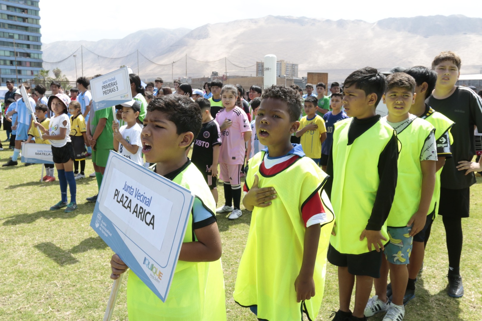Con enorme alegría y entusiasmo más de 350 niños, de 7 a 15 años de edad, llegaron hasta el mítico Estadio Municipal de Cavancha para ser parte de la Ceremonia Inaugural de la “COPA IQUIQUE 2023”, torneo de babyfútbol de equipos que representan a 16 juntas de vecinos de nuestra comuna.