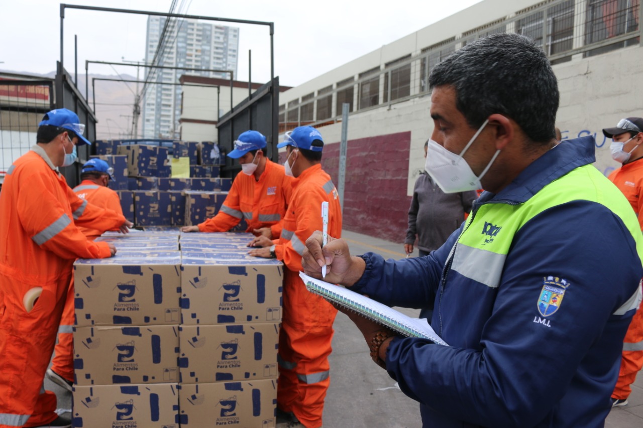 Funcionarios municipales, personal de la Defensa Civil de Chile y cargadores de Zofri, contratados especialmente para estos fines, ayudarán a repartir las cajas por distintas zonas de la comuna.