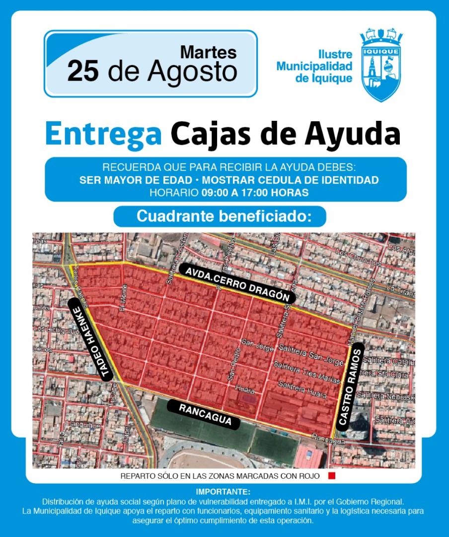17/08/2020 ¡Revisa aquí el cuadrante por donde se repartirán las cajas de mercadería hoy!