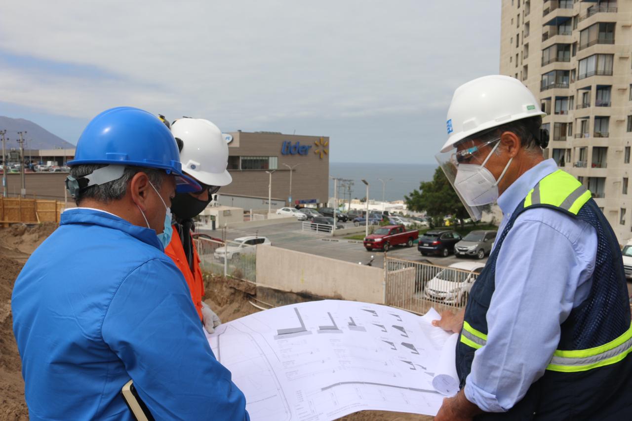 Soria Macchiavello llegó hasta Avenida Diagonal Francisco Bilbao con calle Teresa Wilms Montt, donde se emplazará este nuevo parque, para supervisar los trabajos del inicio de su primera etapa, el que consta de un muro de contención de casi 140 metros de largo y que colinda con el Condominio “Tres Mares”.