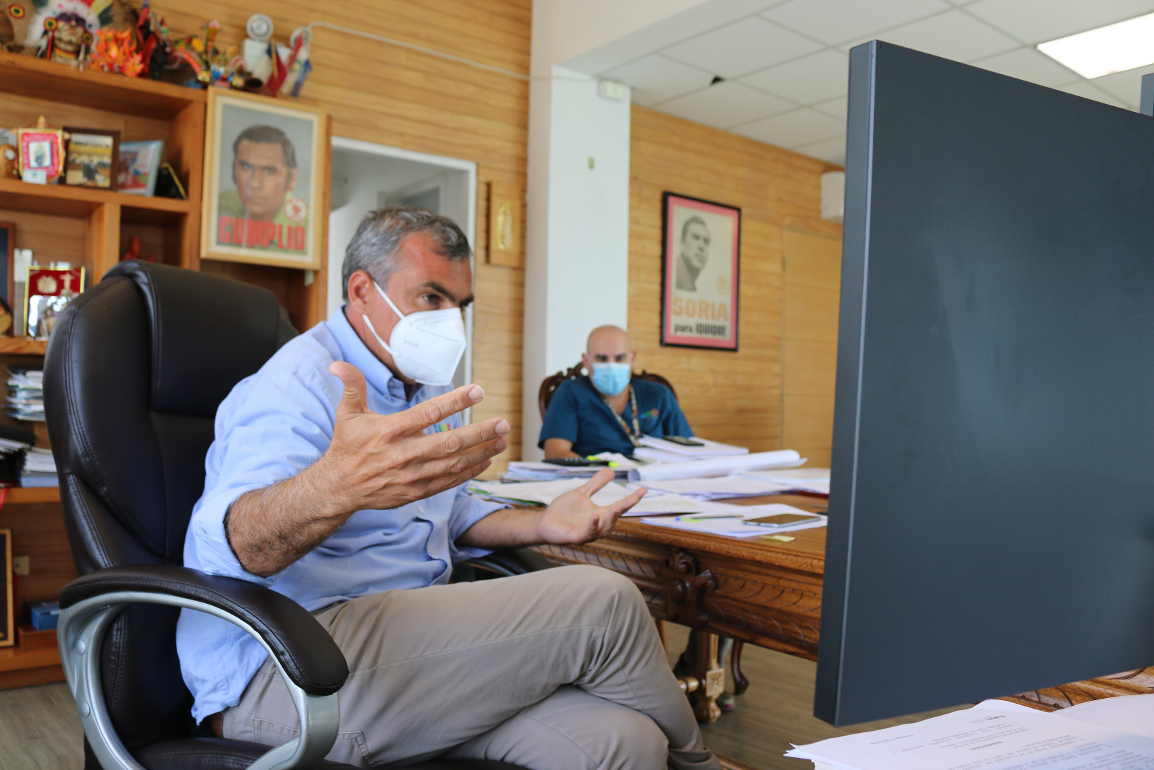 Acompañado de profesionales del Departamento de Salud de Cormudesi, Soria Macchiavello planteó que el masivo e irregular ingreso de ciudadanos extranjeros a Chile, a través de nuestra región, es la principal causa de las actuales estadísticas que mantienen estancada a la comuna de Iquique en Fase de Transición.