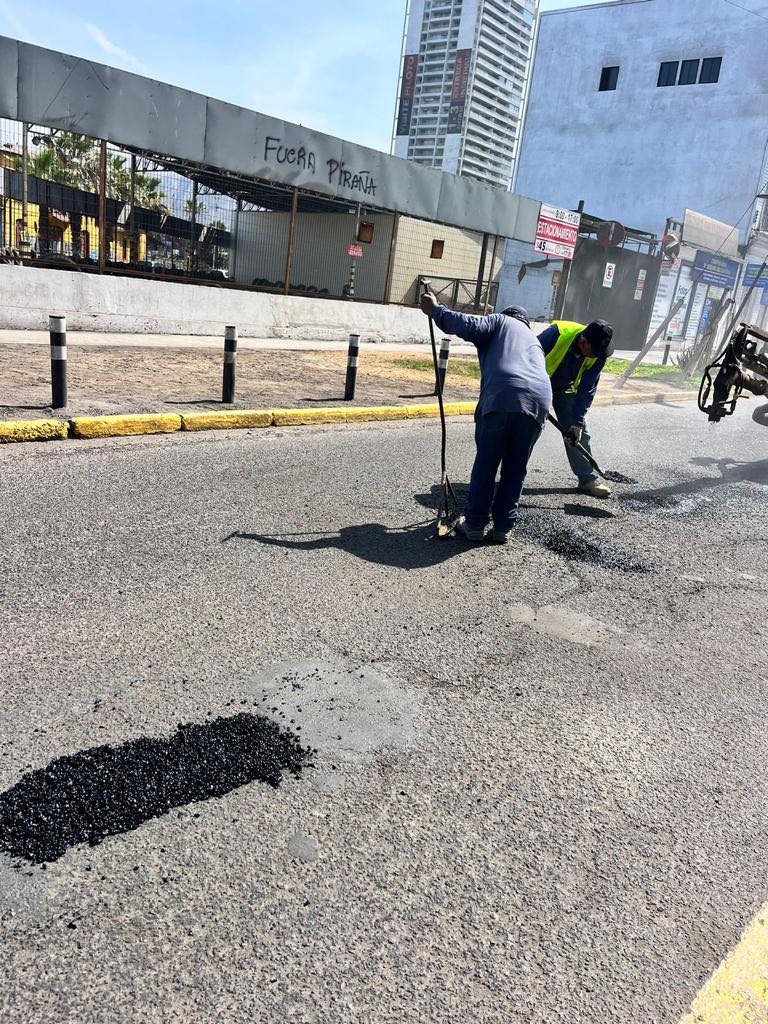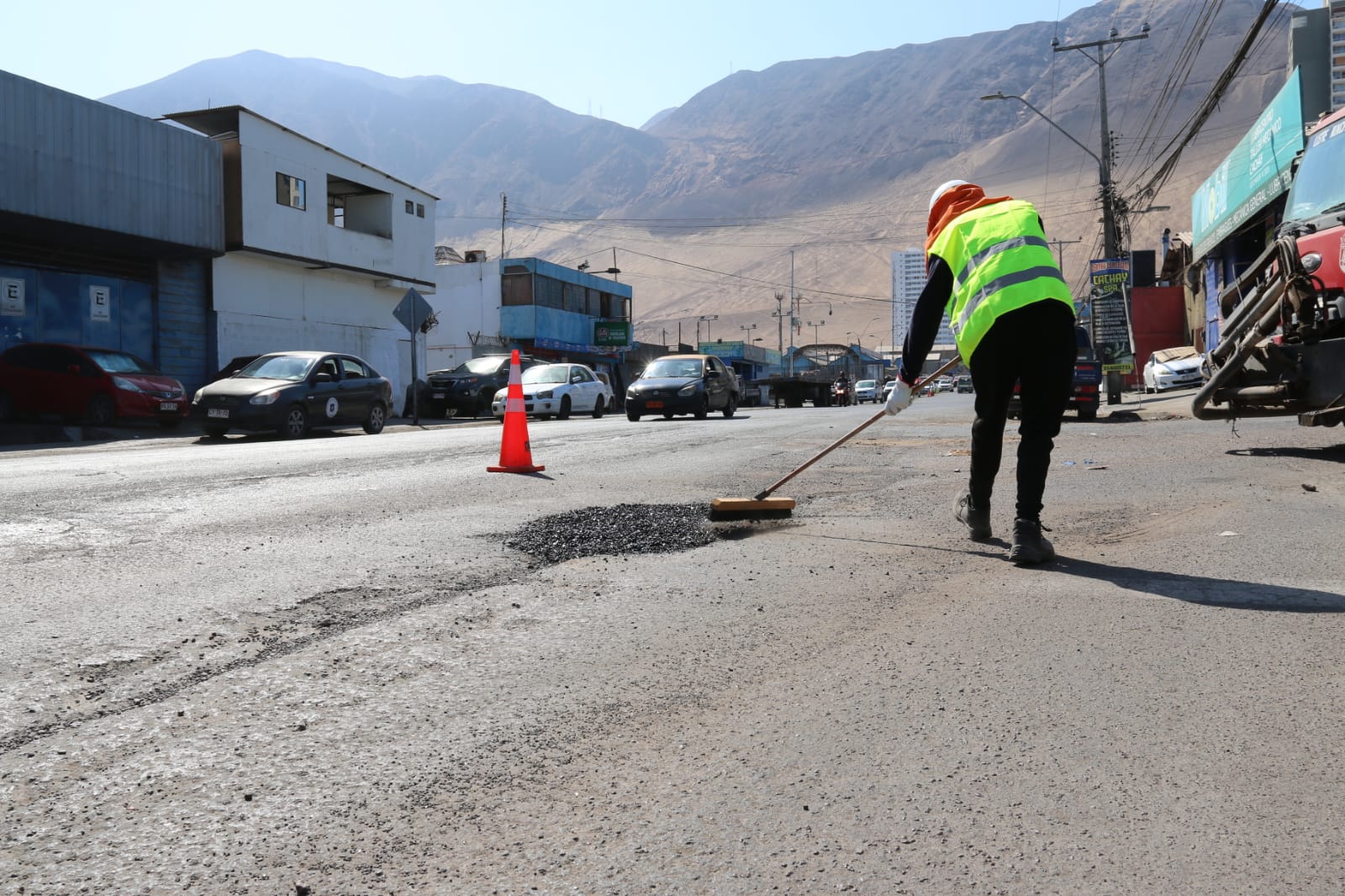 En pasajes, calles y avenidas de la capital regional, el camión bacheador de la Municipalidad de Iquique trabaja para mejorar las condiciones de circulación de vehículos y peatones, reparando “eventos” de baja profundidad, y de hasta 20 metros cuadrados, de acuerdo a lo que permite la Ley.
