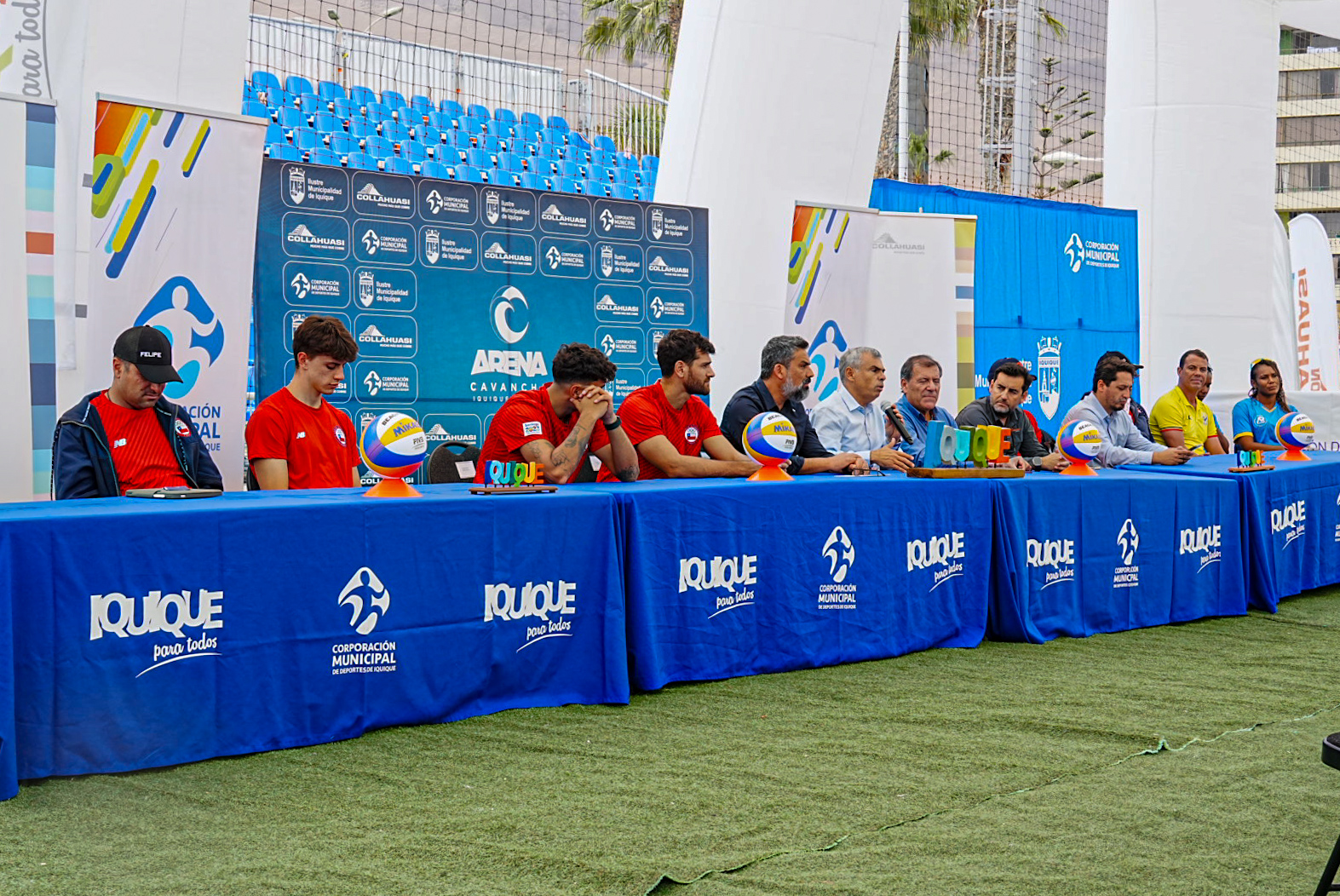 “Agradecemos a los primos Grimalt por estar aquí. Nosotros hemos apostado por los deportes de playa como una herramienta para que ocupen de buena forma, niños y niñas, su tiempo libre. Y lo hemos hecho de forma permanente, aquí se habla del Arena Cavancha (…) porque generalmente en los deportes de arena la estructura se arma y se desarma por el evento. Lo que tenemos acá es un estadio permanente, uno de los pocos en Sudamérica. Aquí entrenan durante toda la semana, tenemos muchas disciplinas en Cavancha y ya nos vamos a extender a Playa Brava. Estamos felices, esperamos que les vaya bien a nuestro equipo de Chile femenino y masculino”, dijo el alcalde Mauricio Soria Macchiavello, presidente del directorio de la Corporación Municipal de Deportes.