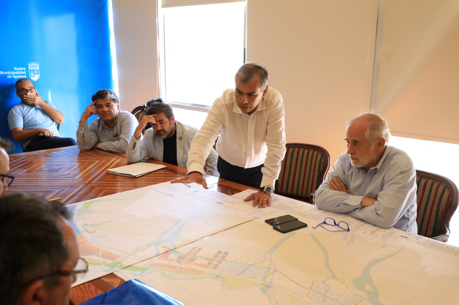 Para ello, el secretario de Estado se reunió con el alcalde Mauricio Soria Macchiavello, siendo acompañado también por el Delegado Presidencial de Tarapacá, Daniel Quinteros Rojas y por el seremi del Minvu, Diego Rebolledo Flores.