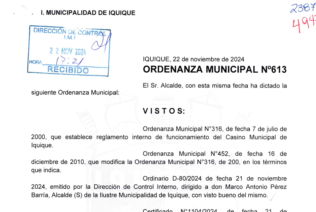 Modifica incisos del Artículo N°180. Favor referirse al documento adjunto en la presente página para interiorizarse al respecto de los cambios aplicados al reglamento de funcionamiento interno del Casino Municipal.