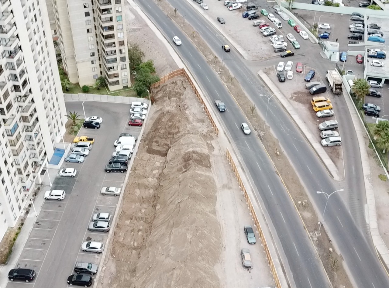 Soria Macchiavello llegó hasta Avenida Diagonal Francisco Bilbao con calle Teresa Wilms Montt, donde se emplazará este nuevo parque, para supervisar los trabajos del inicio de su primera etapa, el que consta de un muro de contención de casi 140 metros de largo y que colinda con el Condominio “Tres Mares”.
