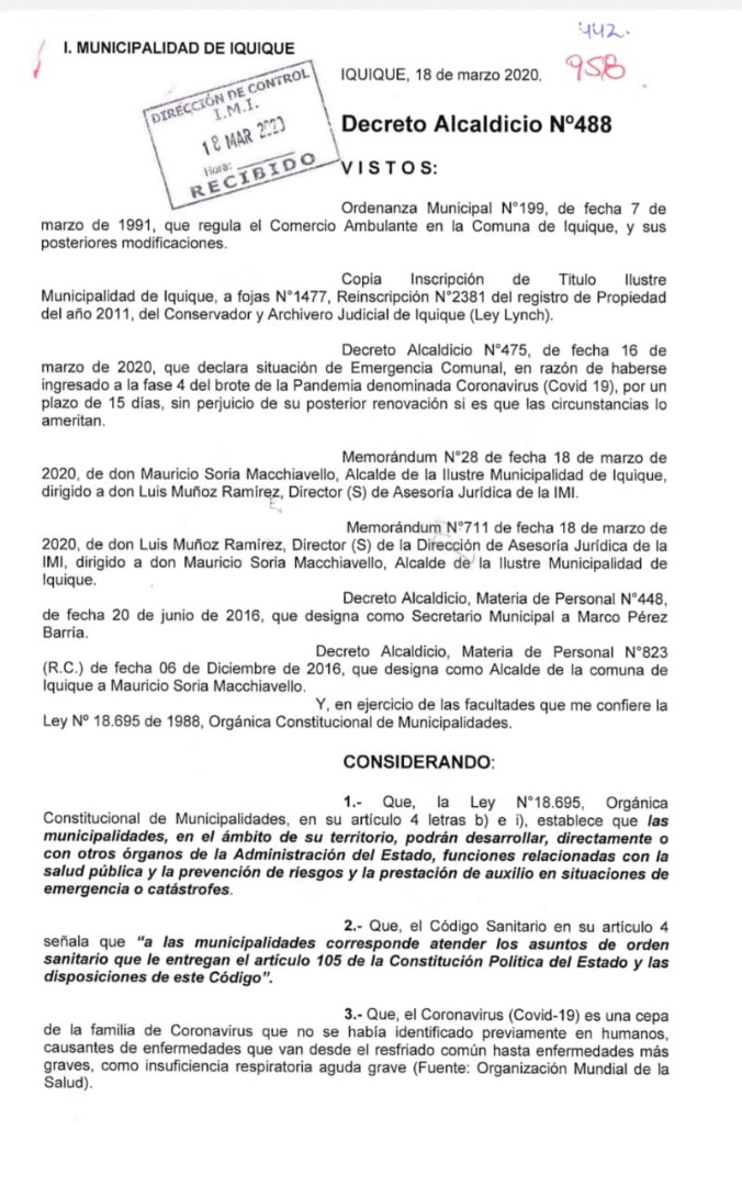 Como una forma de potenciar las medidas que se han ido adoptando en nuestra ciudad, a partir de la declaratoria de Emergencia Comunal mediante el Decreto N°475/2020, por parte del alcalde Mauricio Soria Macchiavello, es que la Municipalidad de Iquique ha determinado emitir otros dos importantes decretos que regulan la utilización del espacio público, en el contexto que vive Chile respecto de su ingreso a la Fase 4 del coronavirus.