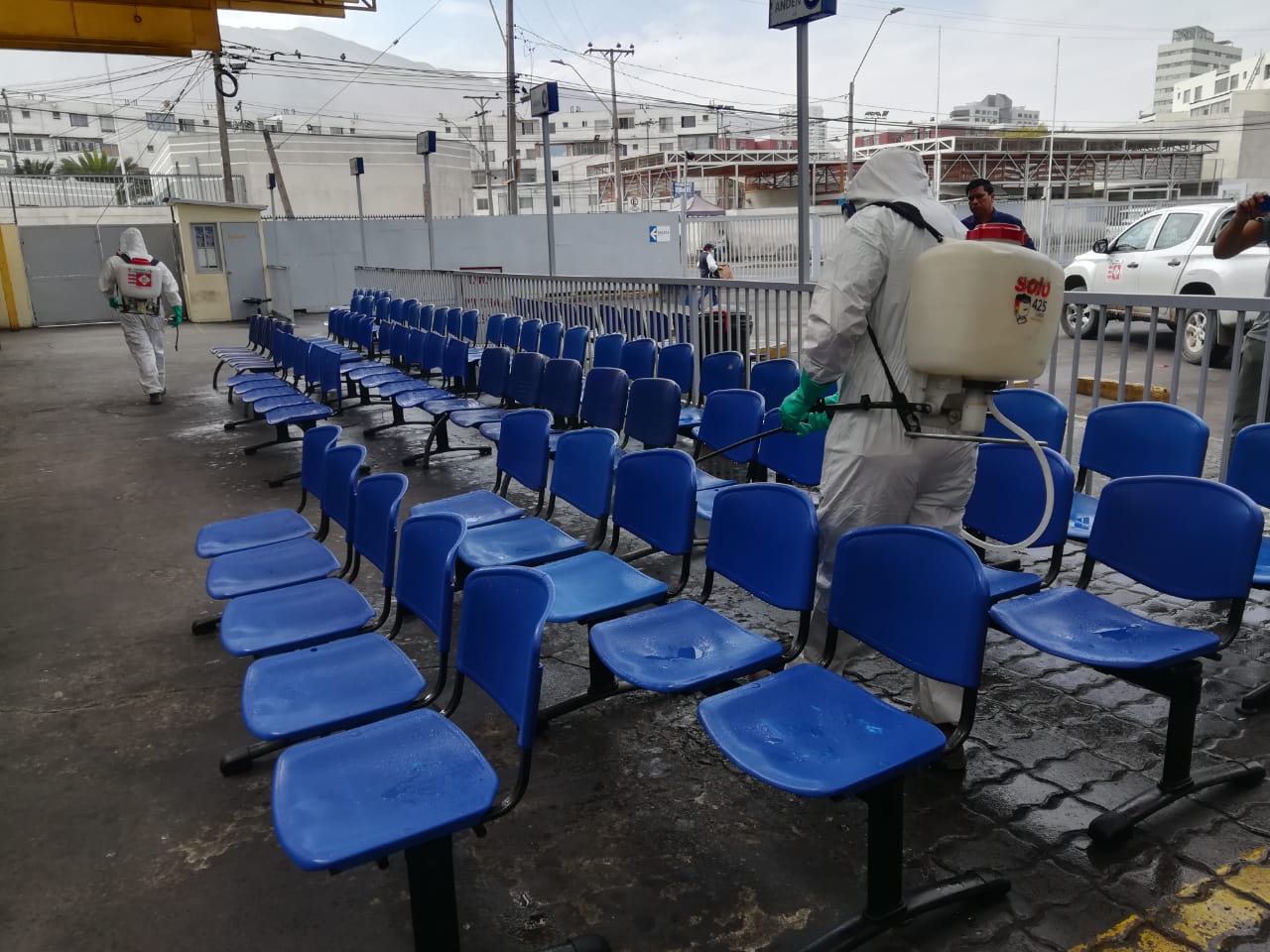 Rodoviario, Caleta Riquelme, la Esmeralda, entre otros sitios fueron higienizados durante hoy. Ayer, en la primera jornada de labores, les tocó a la Farmacia Comunal y el Estadio Tierra de Campeones Ramón Estay Saavedra.